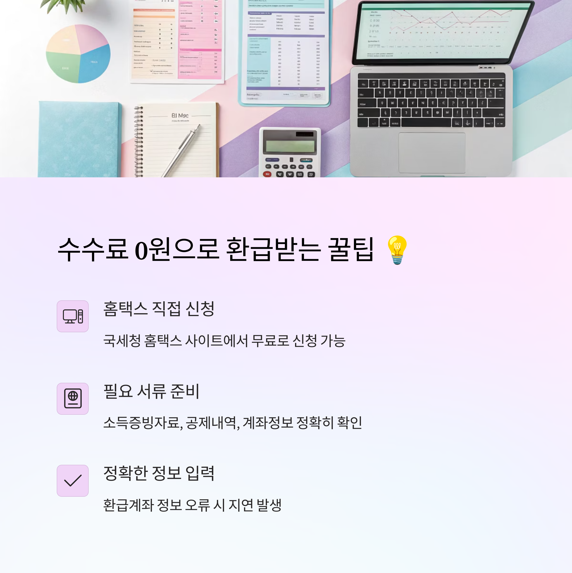 수수료 없이 종소세 환급을 원하신다면, 국세청 홈택스를 통해 직접 신고도 가능해요. 다소 복잡하지만 차근차근 따라 하면 누구나 할 수 있어요. 아래는 가장 간단한 요약이에요.