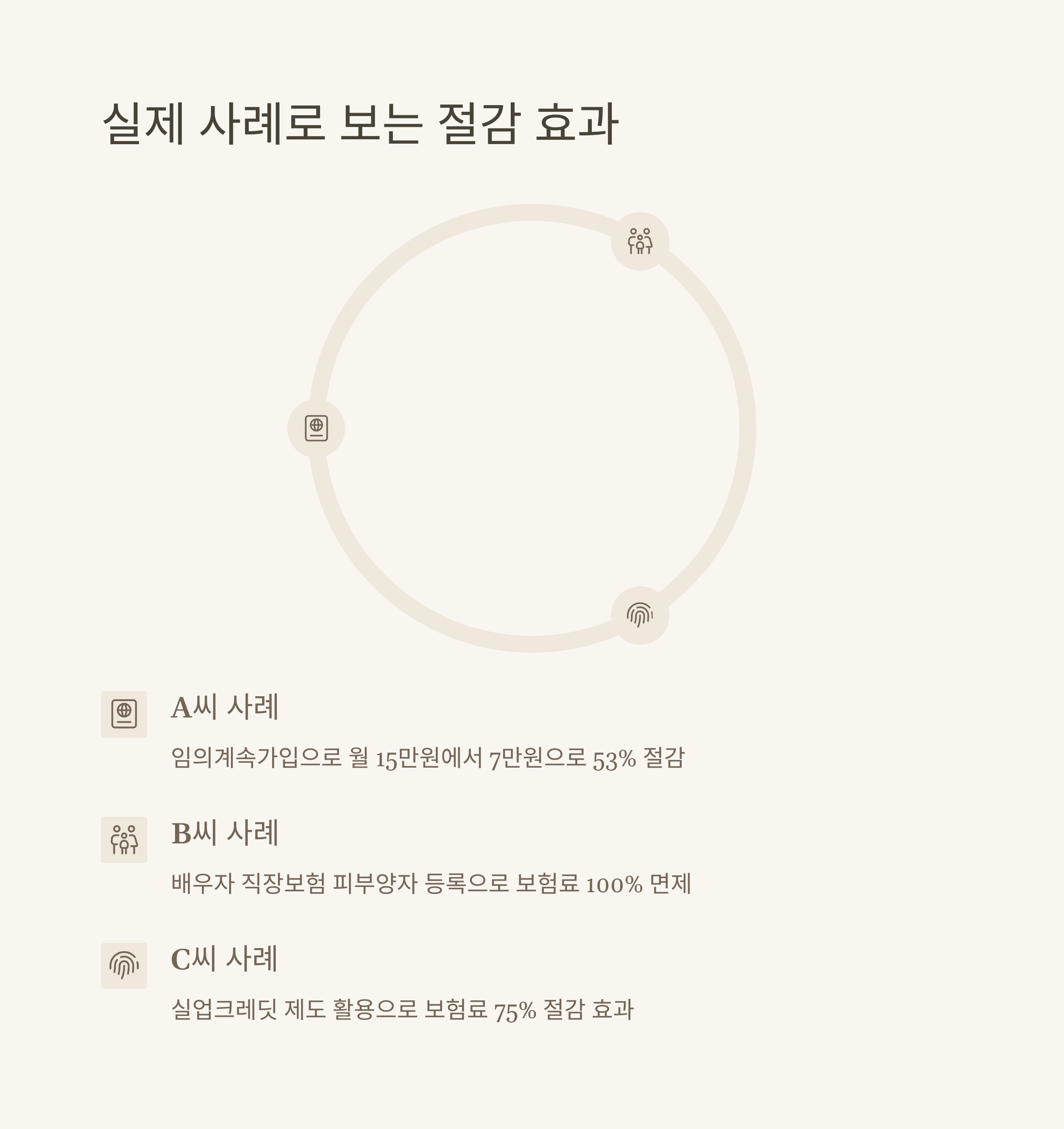 세 분 모두 지역가입자 보험료 산정 방식을 감면 신청으로 조정했어요. ‘소득 없음’ 또는 ‘실업 상태’라는 걸 증명하면 공단에서 보험료를 낮춰주거든요. 이건 전화 한 통으로도 시작할 수 있는 일이라 진짜 꼭 해보셔야 해요!
