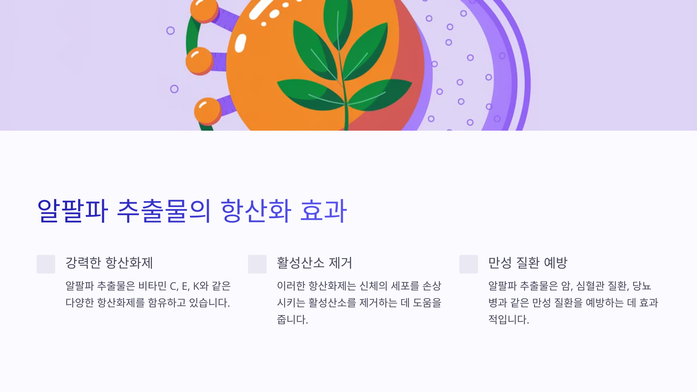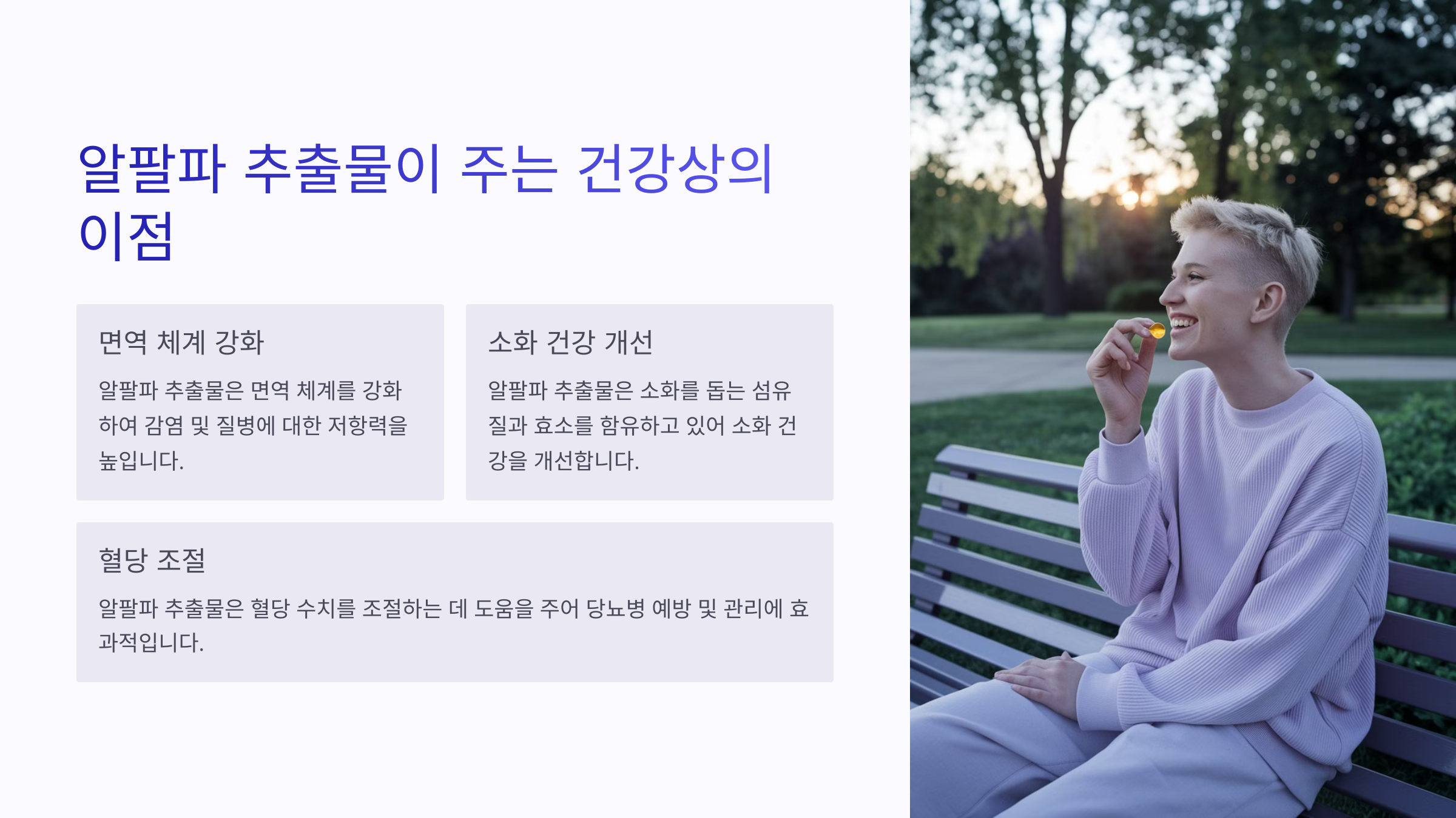📌 다음 섹션에서는 알팔파추출물의 건강 효능을 더 자세히 알아볼게요!