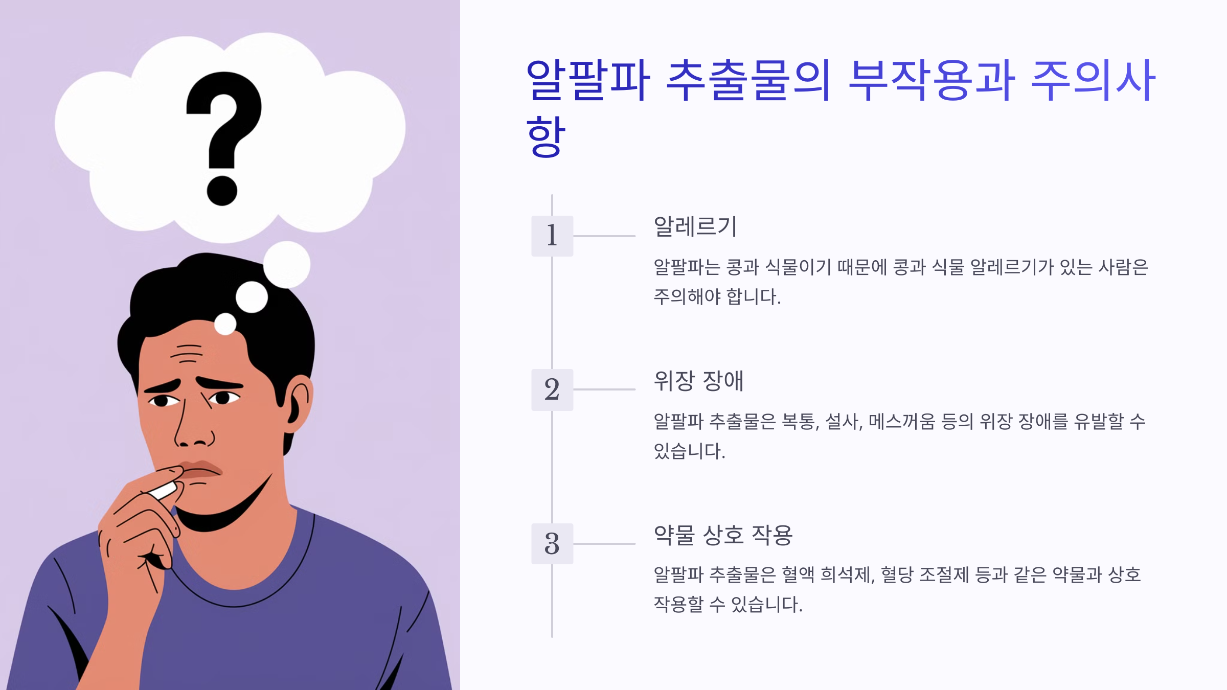 📌 다음 섹션에서는 알팔파추출물의 부작용과 주의사항을 알아볼게요!