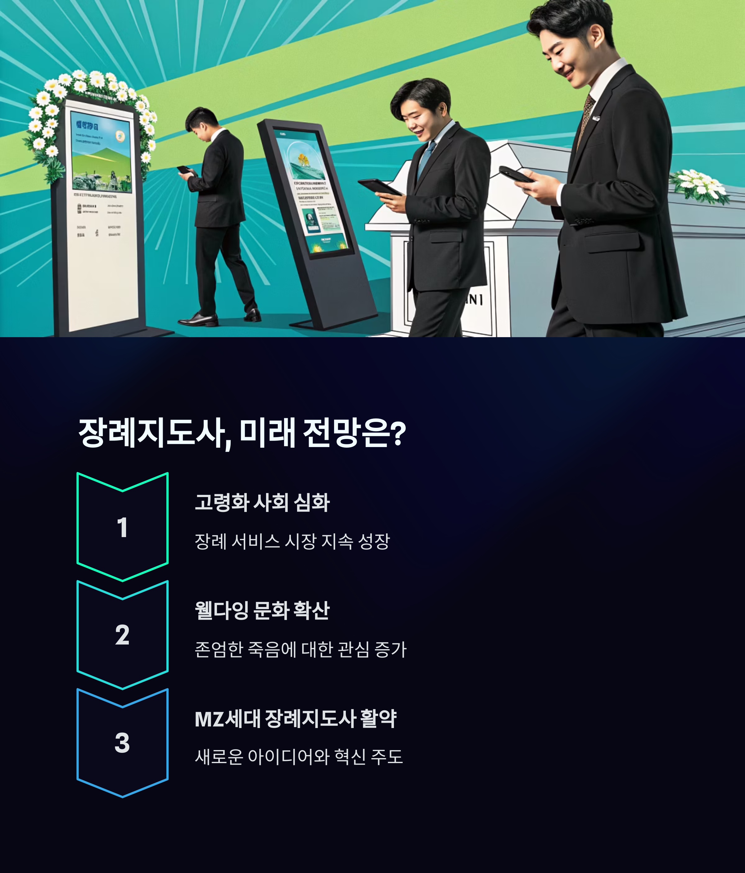 중소기업청의 미래 유망 직종 자료에서도 장례지도사는 '사회복지 기반 서비스직' 중 가장 높은 성장 가능성을 가진 직업군으로 소개되고 있어요. 이는 단순히 장례를 치르는 행위가 아니라, '죽음의 질'까지 고려하는 사회 분위기 때문이에요.
