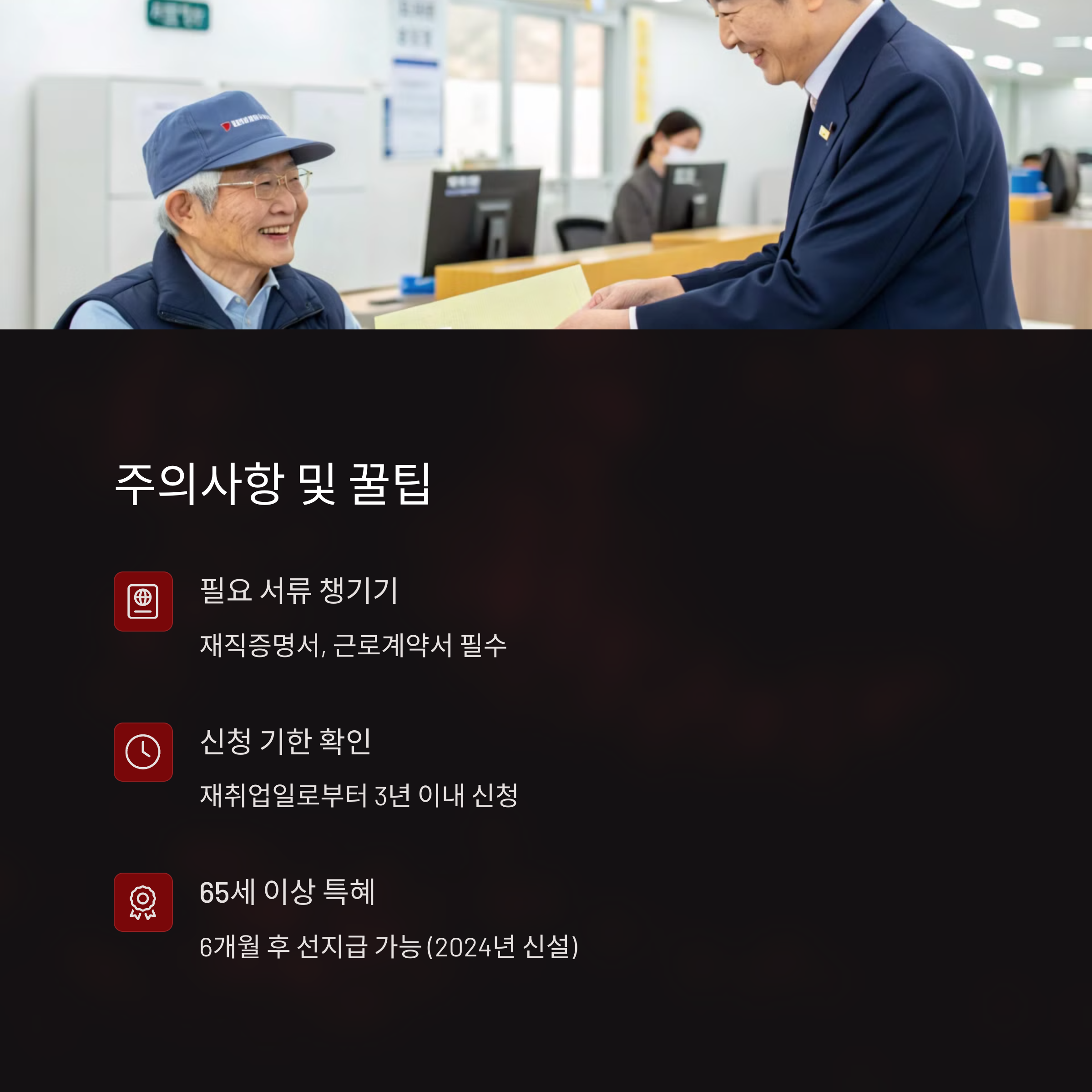 재취업수당은 신청만 하면 다 받을 수 있는 게 아니라서, 몇 가지 꼭 체크해야 할 포인트들이 있어요. 조건을 충족하고도 실수로 놓치거나, 신청 기간을 지나버려 못 받는 경우가 은근히 많거든요 😥
