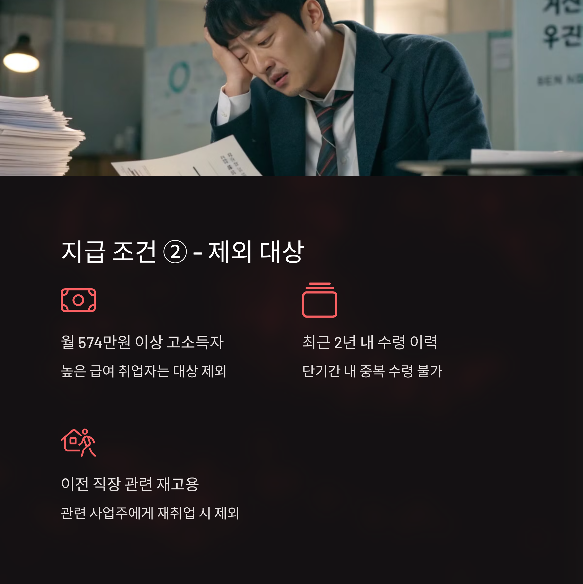 | ⑤ 실업인정 받은 이력 보유 | 수급 자격 승인 이후 실제로 실업급여 수령한 이력이 있어야 함 |