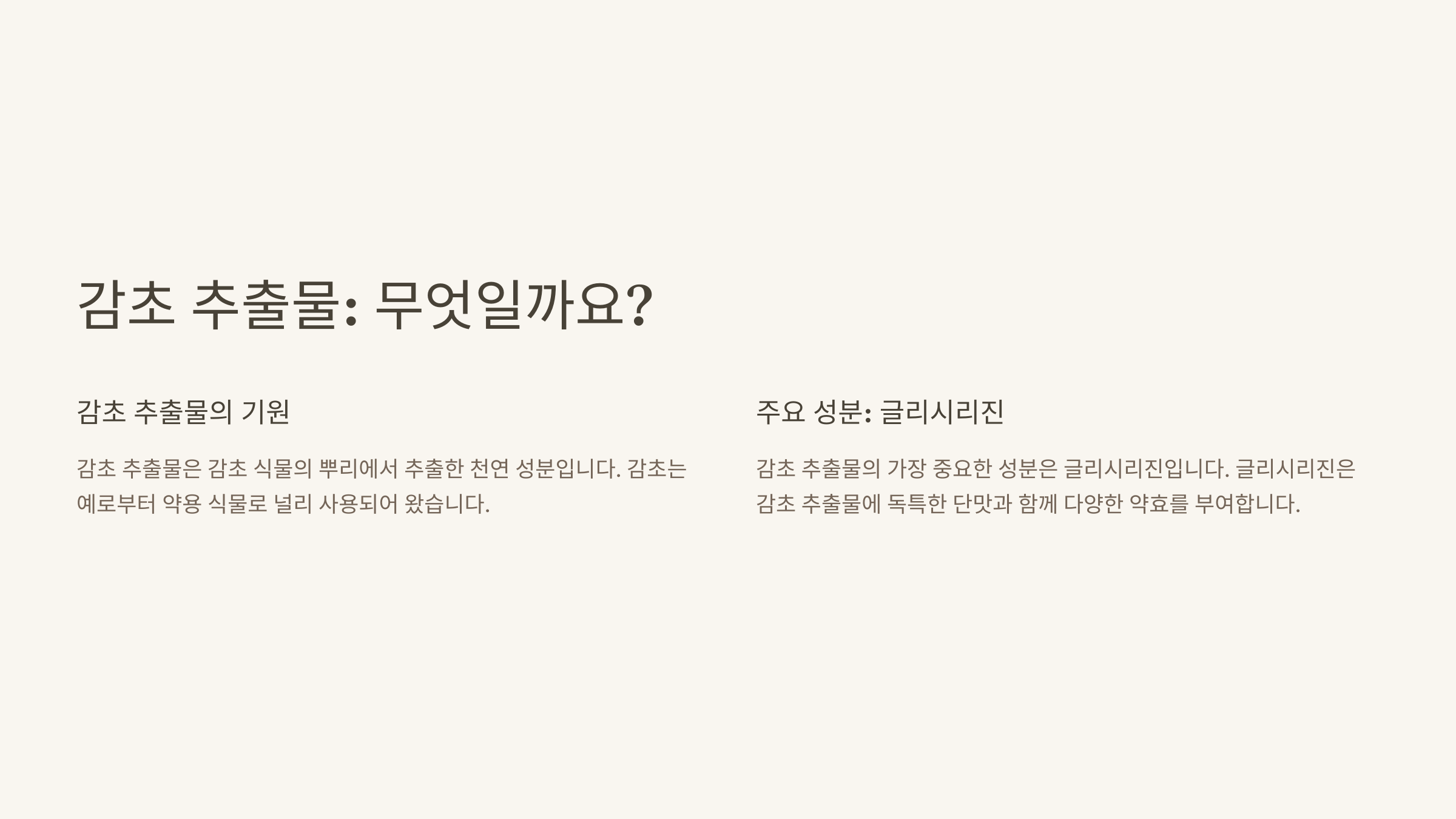 👉 **다음은 "감초추출물의 주요 건강 효능"을 살펴볼게요!**
