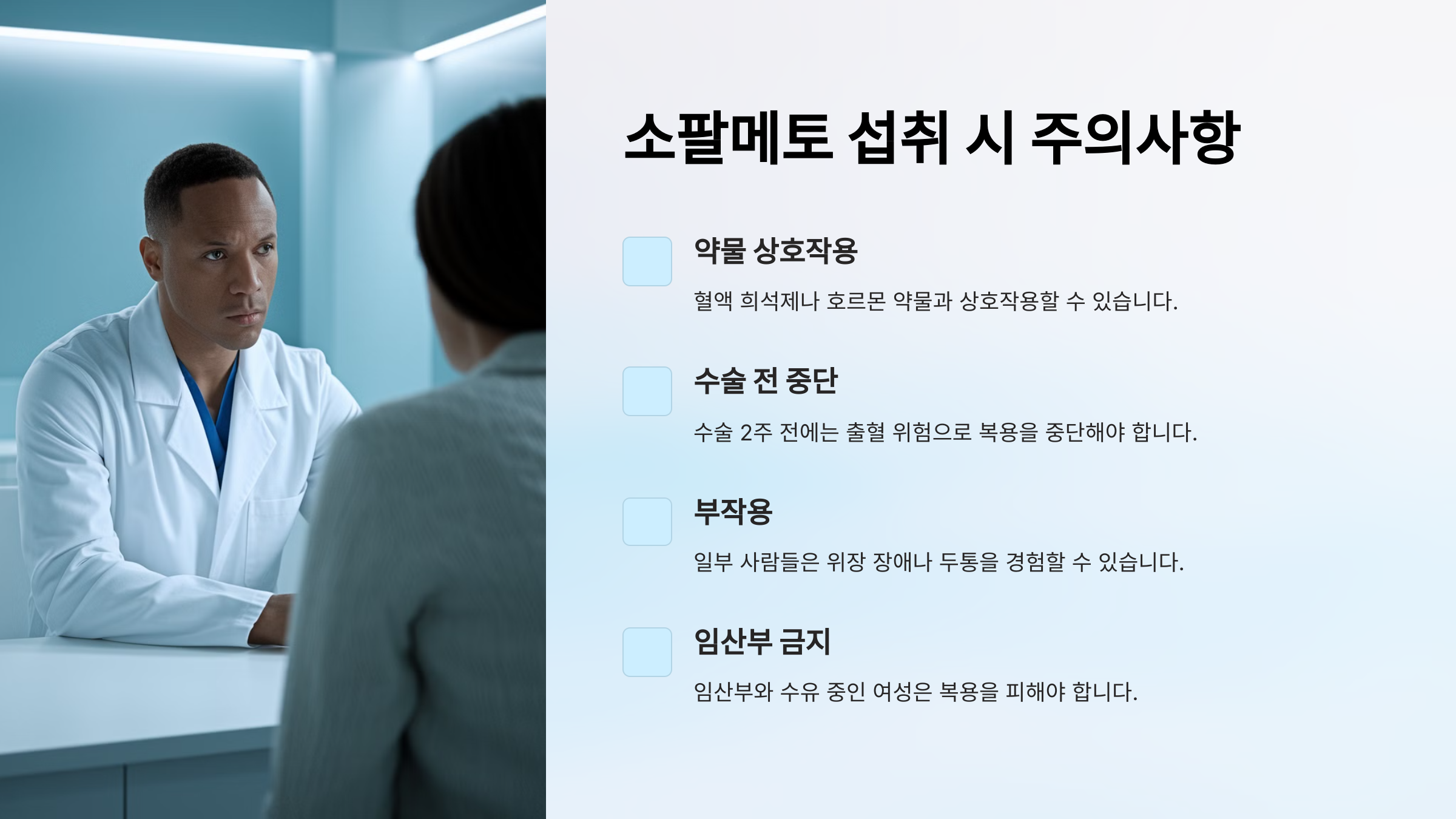 | 💊 혈액 희석제 복용 중 | 소팔메토가 혈액 응고를 방해할 수 있어 주의가 필요 |