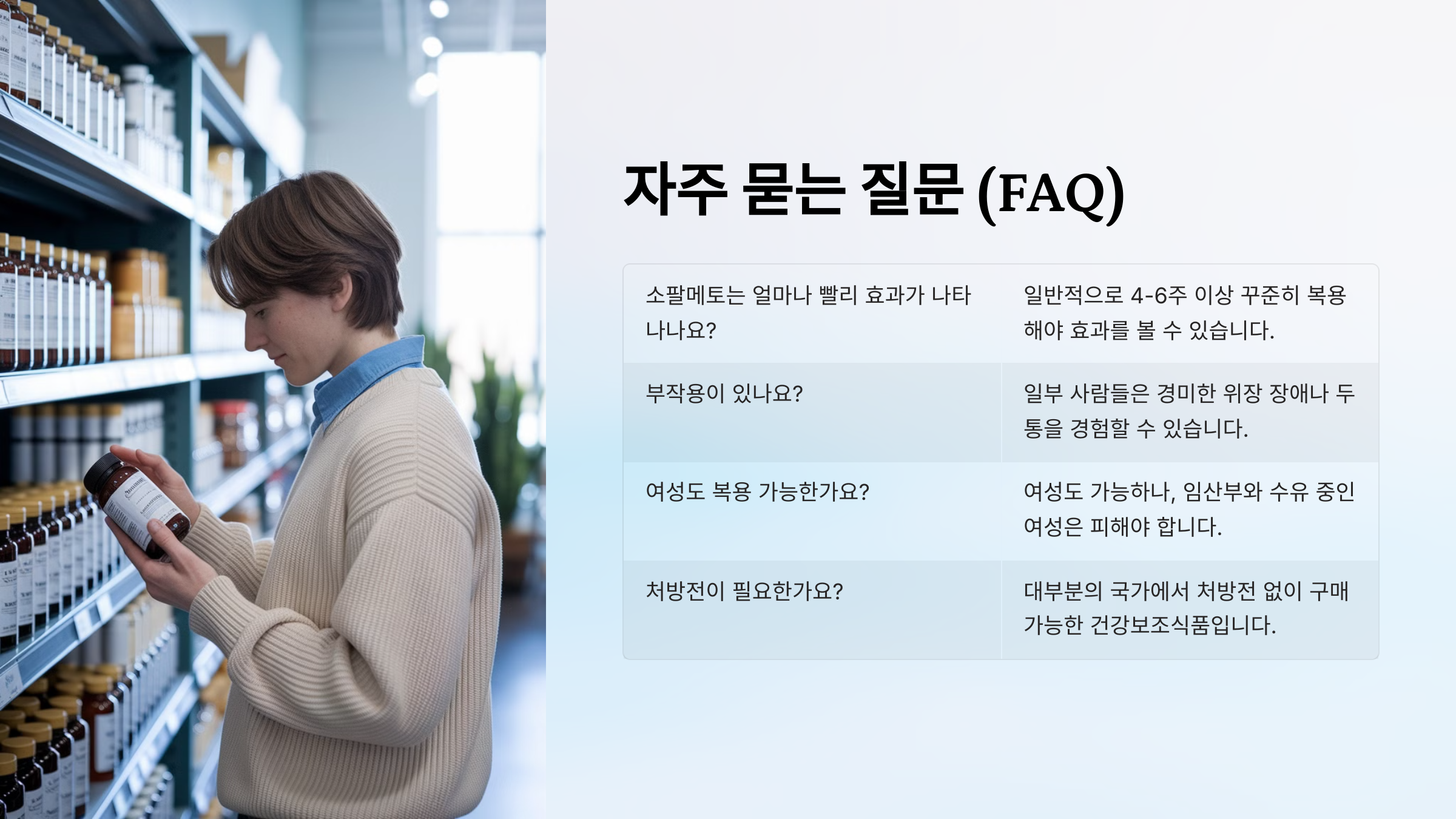 이제 소팔메토에 대한 궁금한 점을 해결할 수 있도록 **FAQ**를 정리해 볼게요! 📌