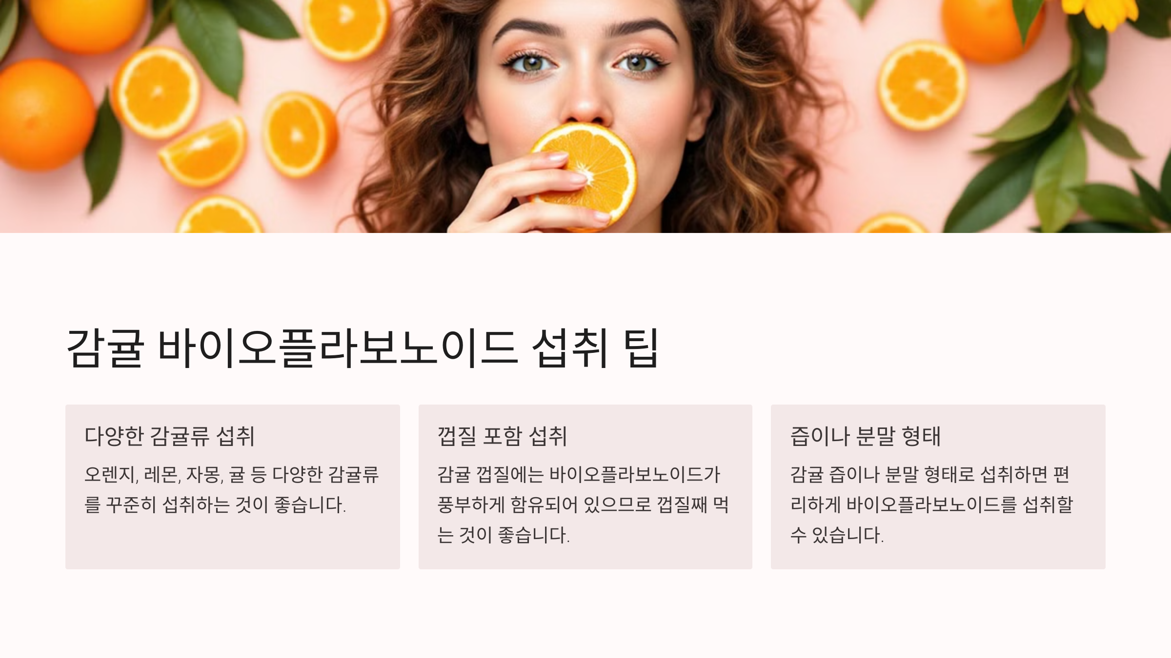 👉 **다음 섹션에서는 "감귤 바이오플라보노이드를 효과적으로 섭취하는 방법"을 알아볼게요!**