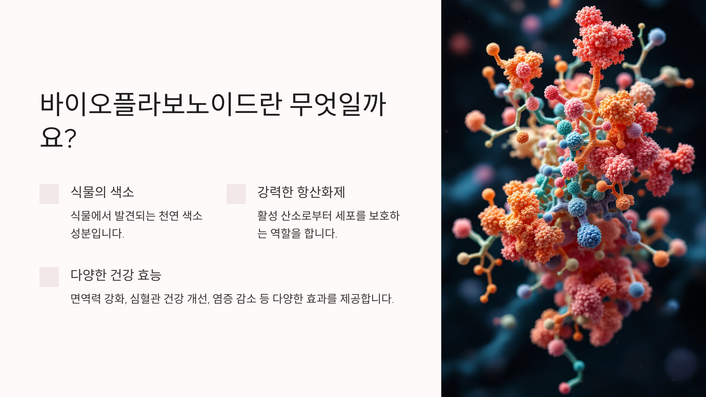 👉 **다음 섹션에서는 "바이오플라보노이드"란 무엇인지 살펴볼게요!**