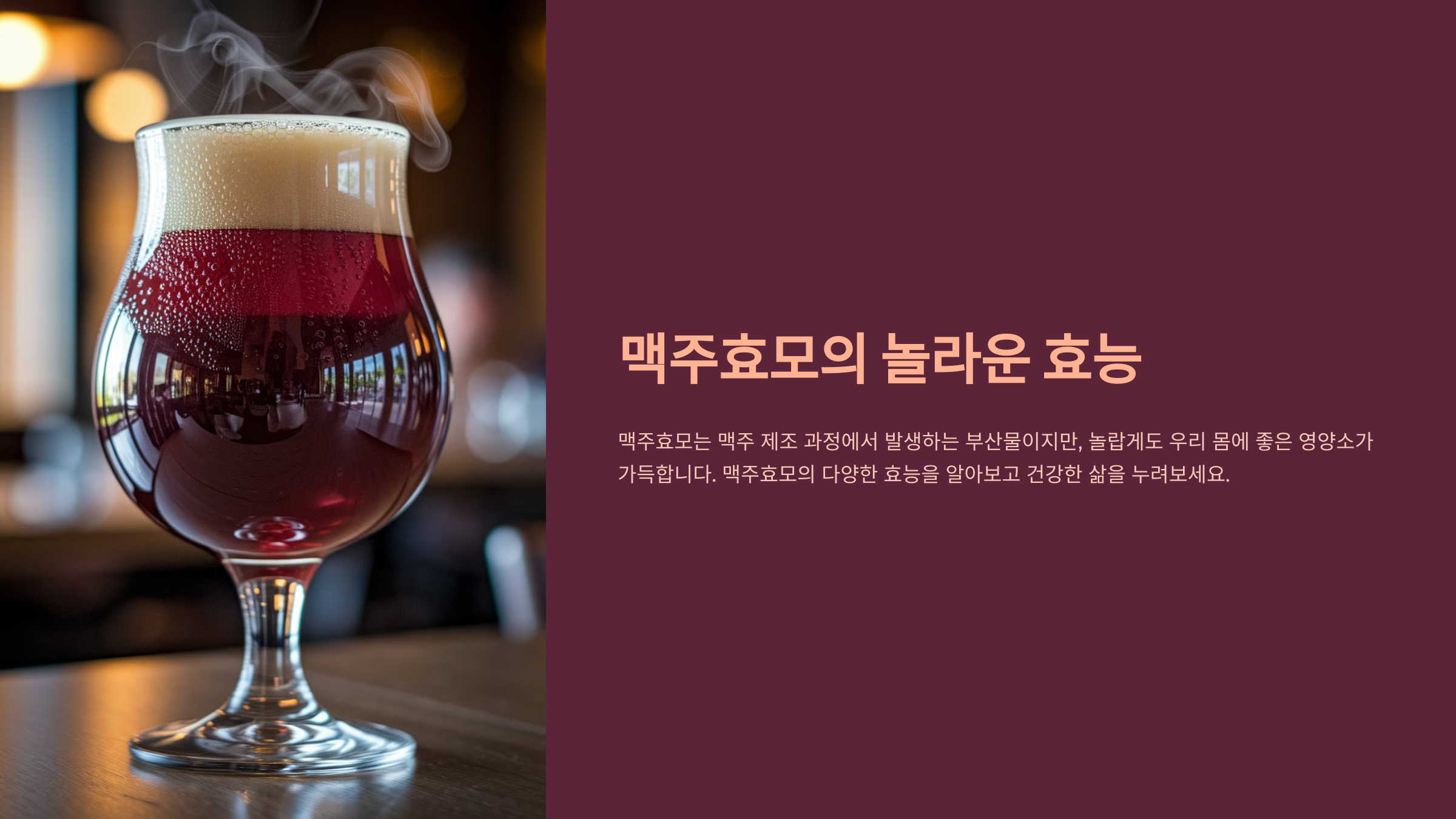 👉 **다음 섹션에서는 "맥주효모의 피부 건강 효과"를 알아볼게요!**