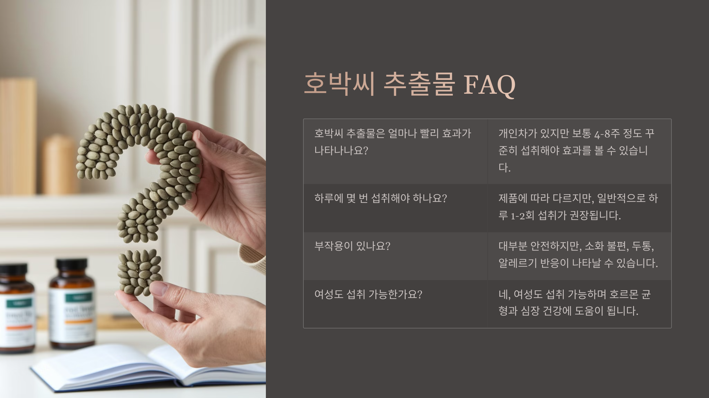 이제 호박씨 추출물에 대한 궁금증을 해결할 수 있도록 **FAQ**를 정리해 볼게요! 📌