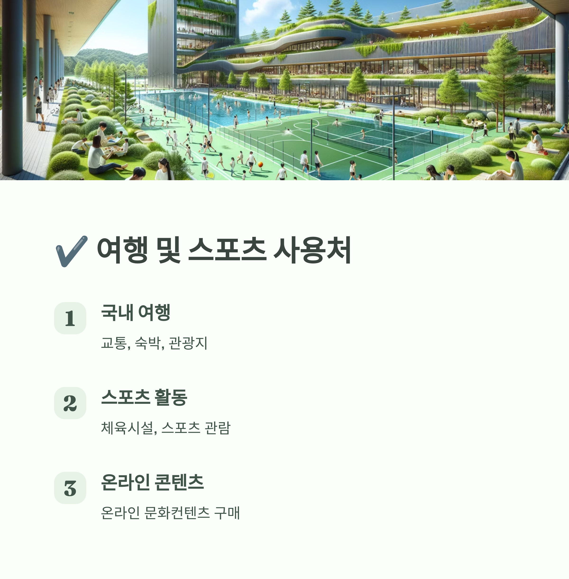 문화누리카드는 문화, 여행, 체육 분야에서 자유롭게 사용할 수 있어요! 🎭🎨 영화관, 도서 구매, 공연·전시 관람, 체육시설 이용 등 다양한 곳에서 사용할 수 있으니 놓치지 마세요! 😉
