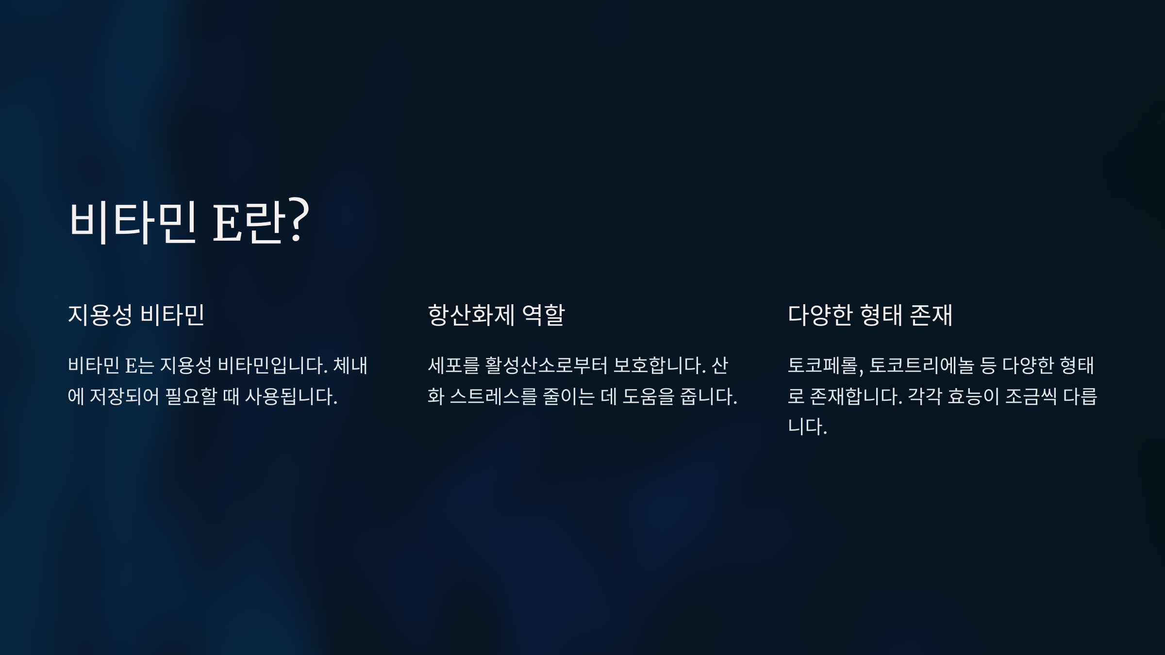 📢 다음 섹션에서는 **비타민 E란 무엇인지** 자세히 설명해 드릴게요!