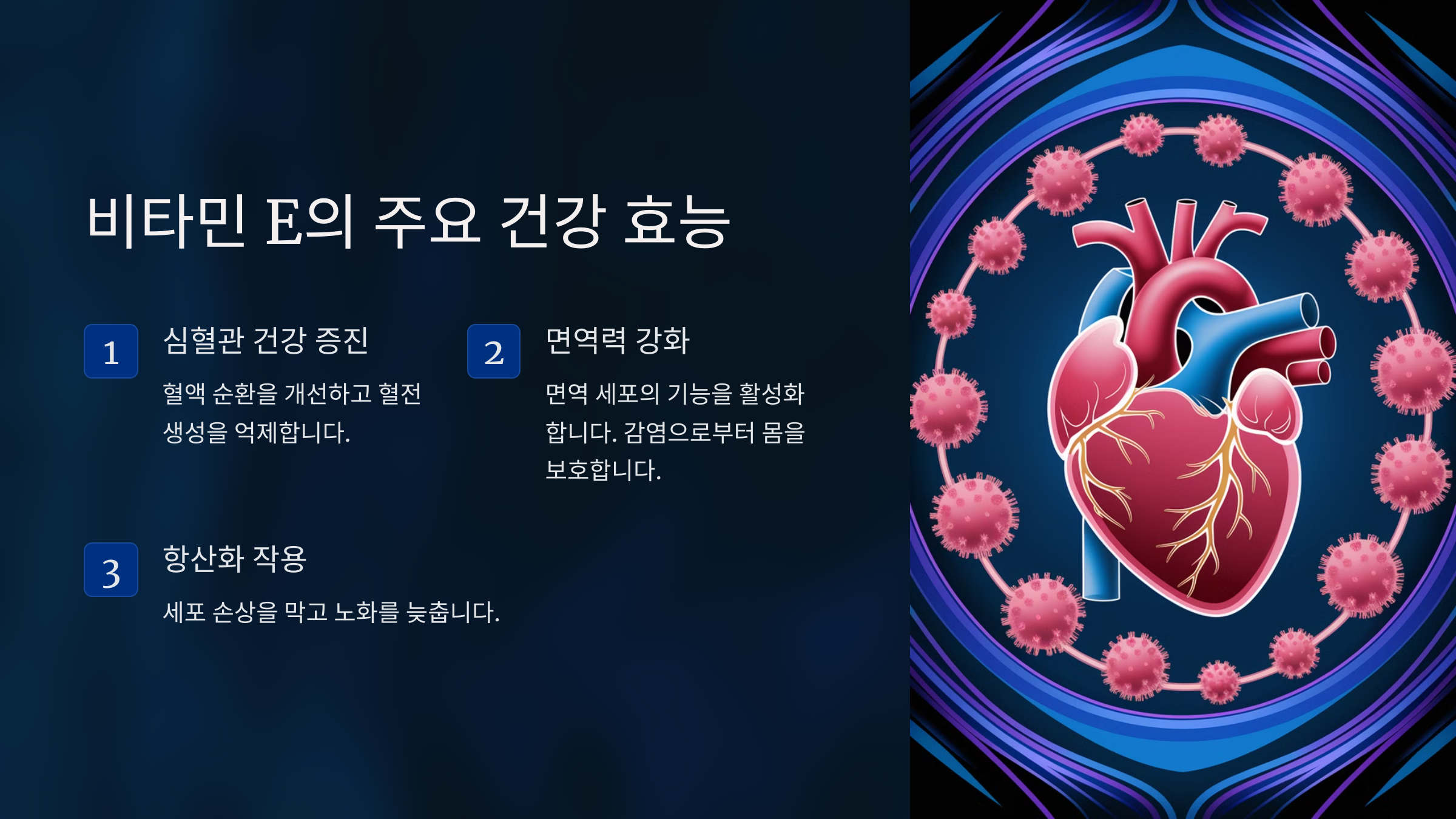 📢 다음 섹션에서는 **비타민 E가 우리 몸에 주는 놀라운 효과**를 소개해 드릴게요!