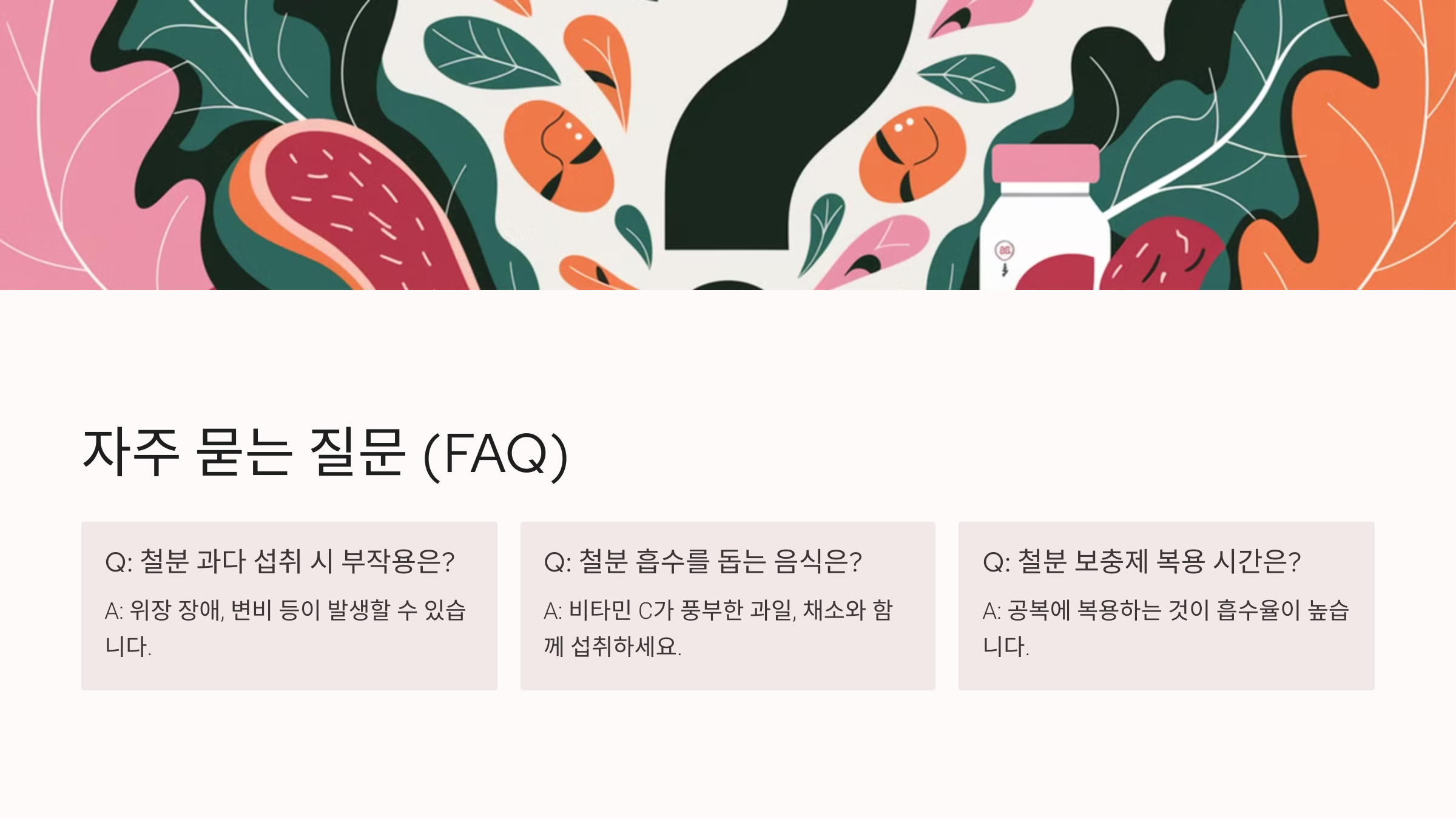 - ✅ 철분 흡수 방해 음식 → 커피, 녹차, 칼슘과 함께 섭취 X