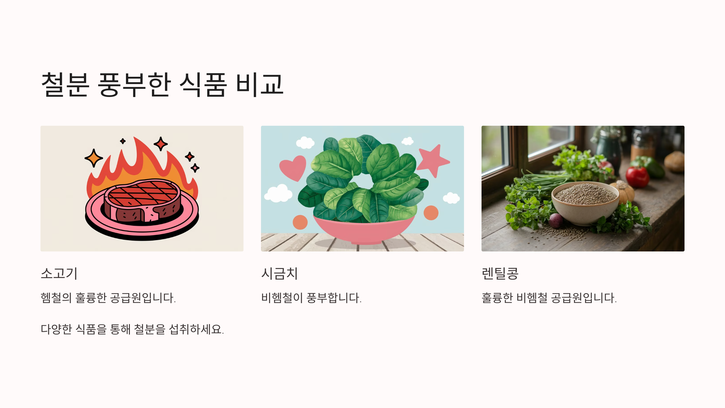 철분은 우리 몸에 필수적인 미네랄이에요! 자신에게 맞는 철분 공급원을 선택해서 건강한 하루를 보내세요! 💪😊