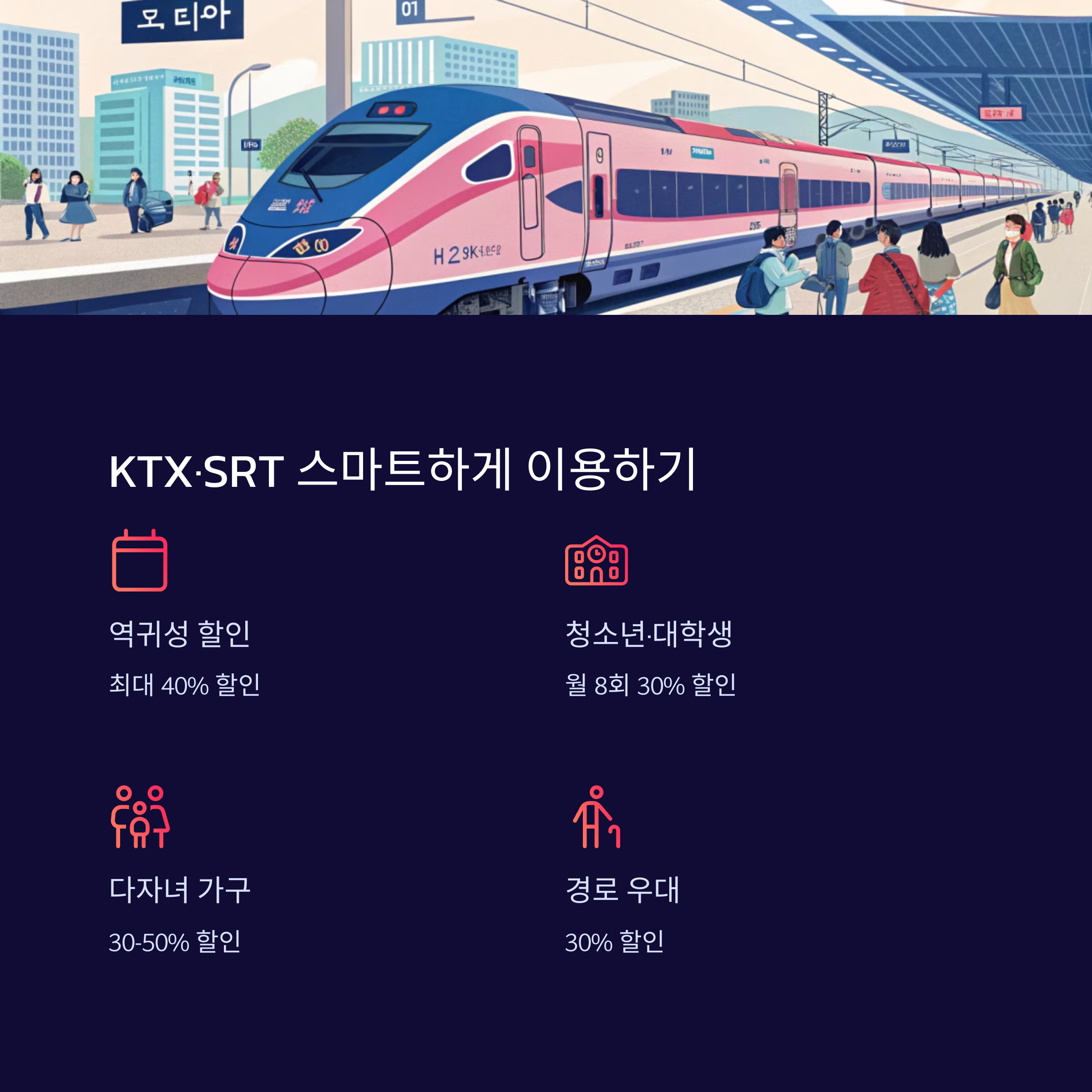 👉 다음 섹션에서는 KTX·SRT 할인 혜택을 자세히 알아볼게요!