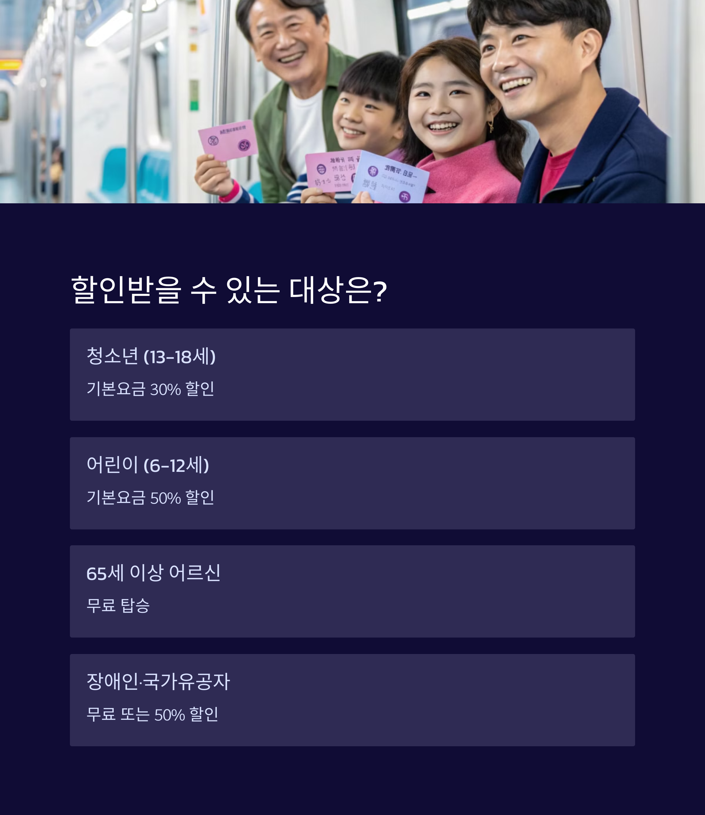🔹 학생·청년·노인·장애인·다자녀 가구 등 다양한 할인 대상자라면 꼭 혜택을 챙기세요.