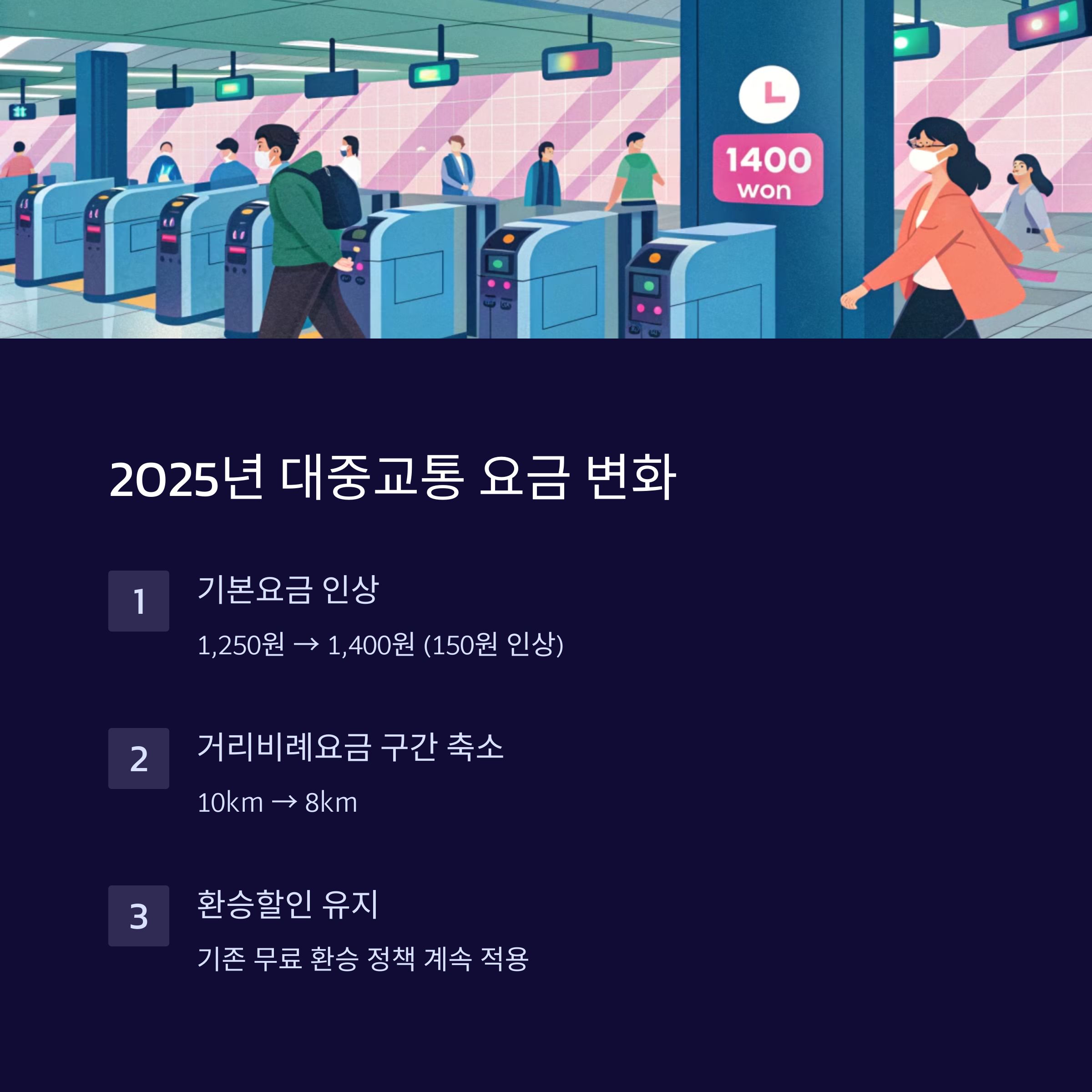 지금까지 2025년 대중교통 요금 할인 정책과 교통비 절약 방법을 알아봤어요! 🚍
