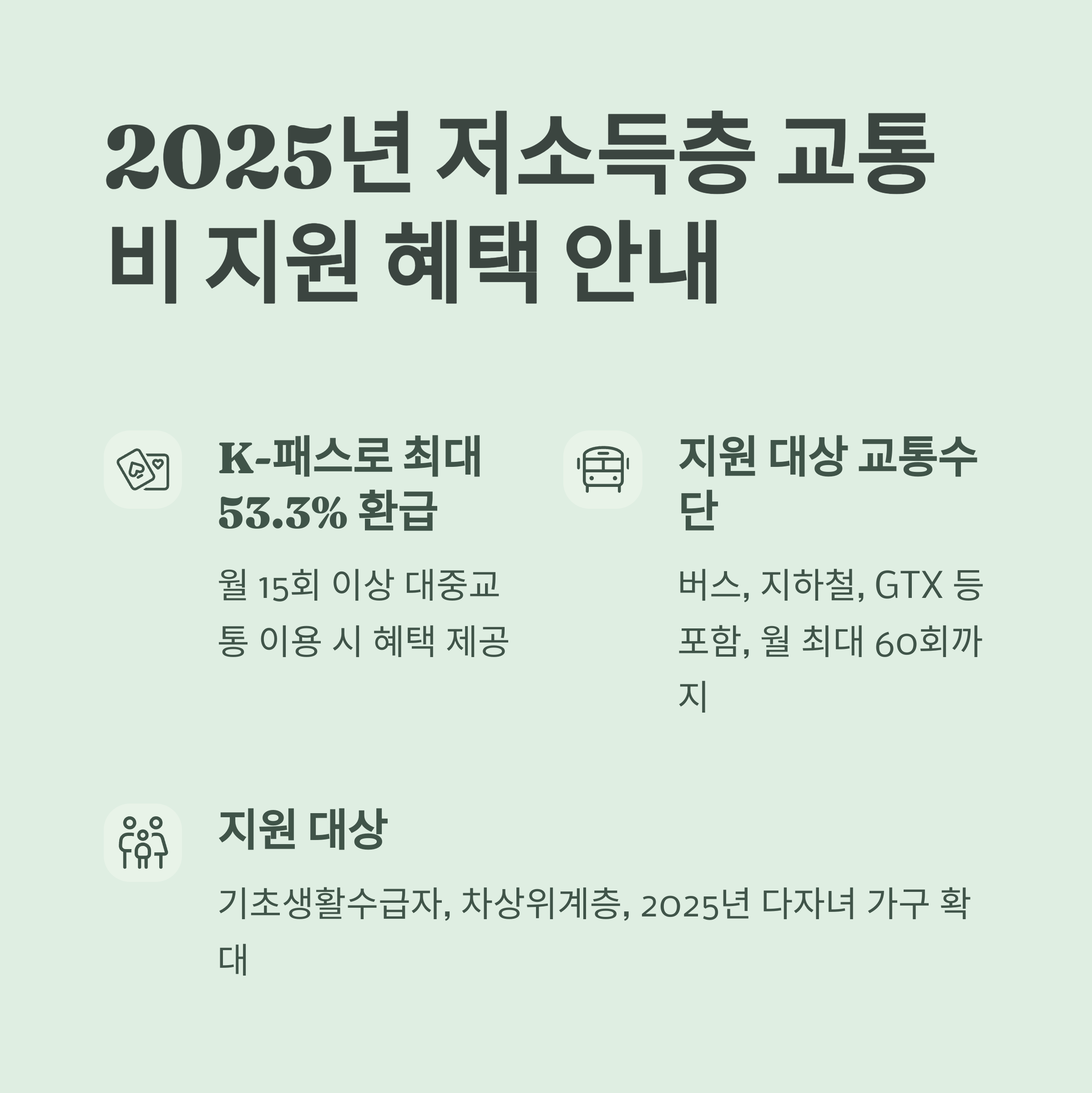 지금부터 2025년 저소득층 교통비 지원 혜택을 하나씩 자세히 살펴볼게요! 🚀