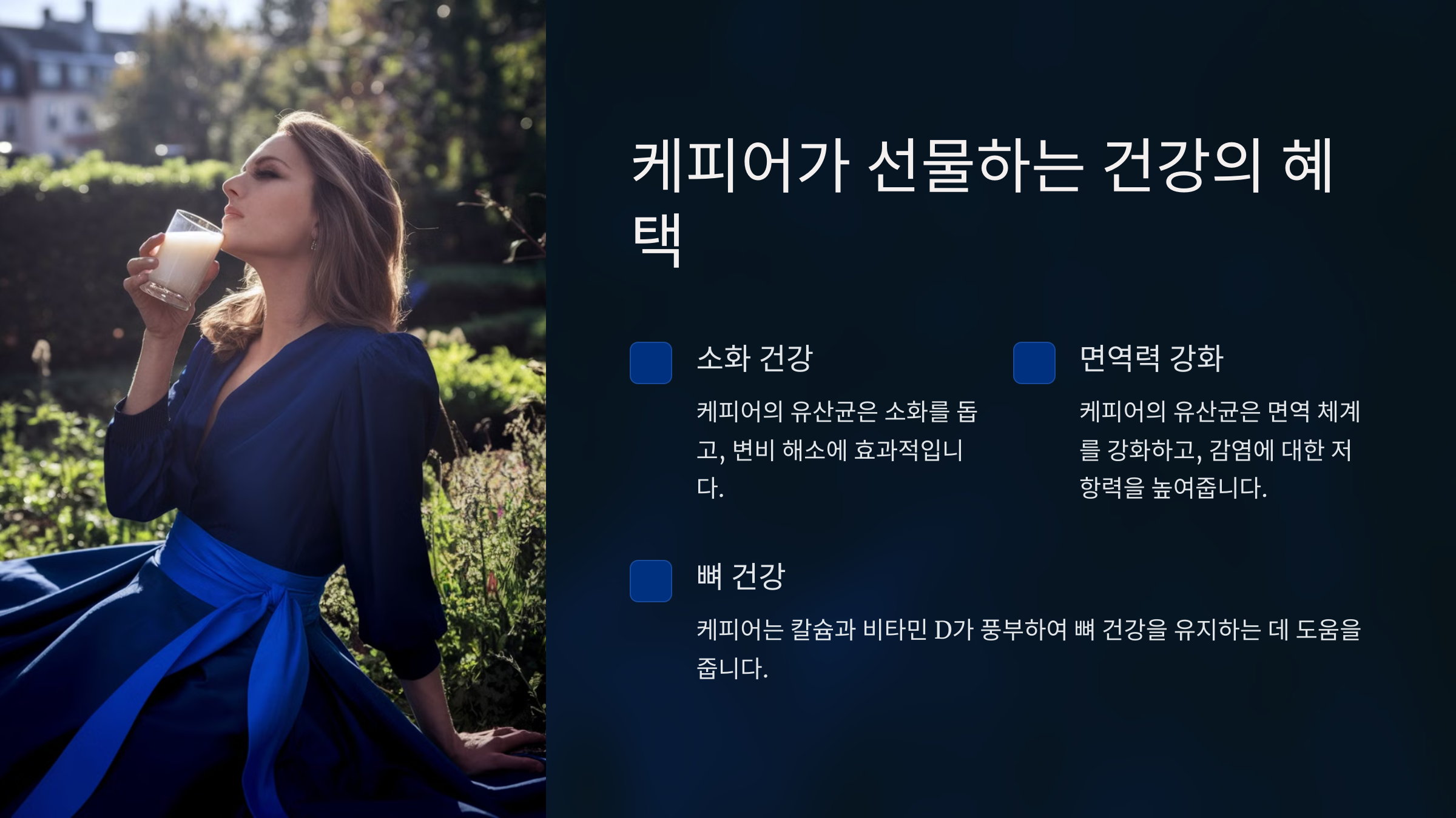💡 **케피어는 장 건강뿐만 아니라 면역력, 뼈 건강, 다이어트까지 도움을 주는 슈퍼푸드예요!**