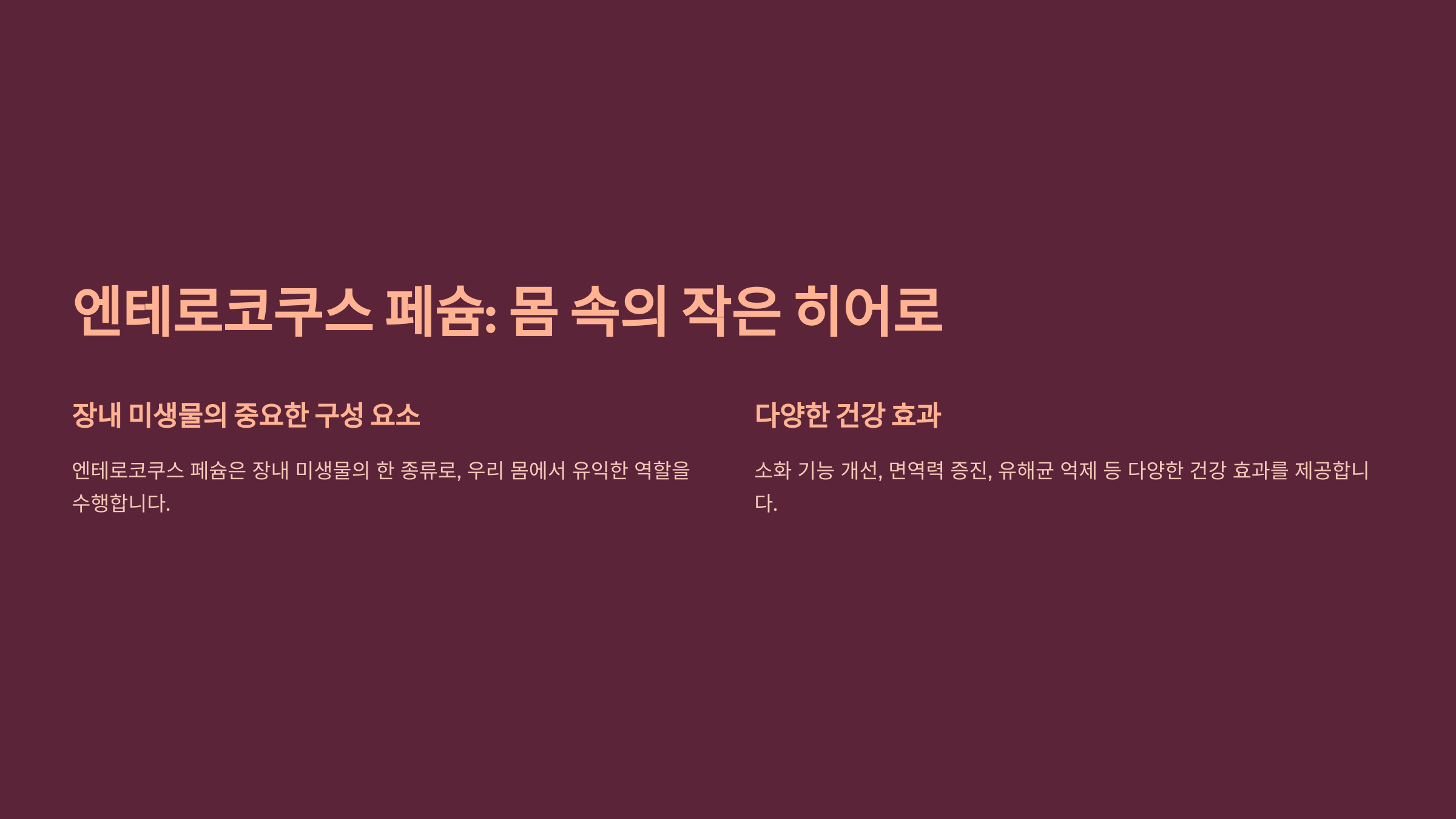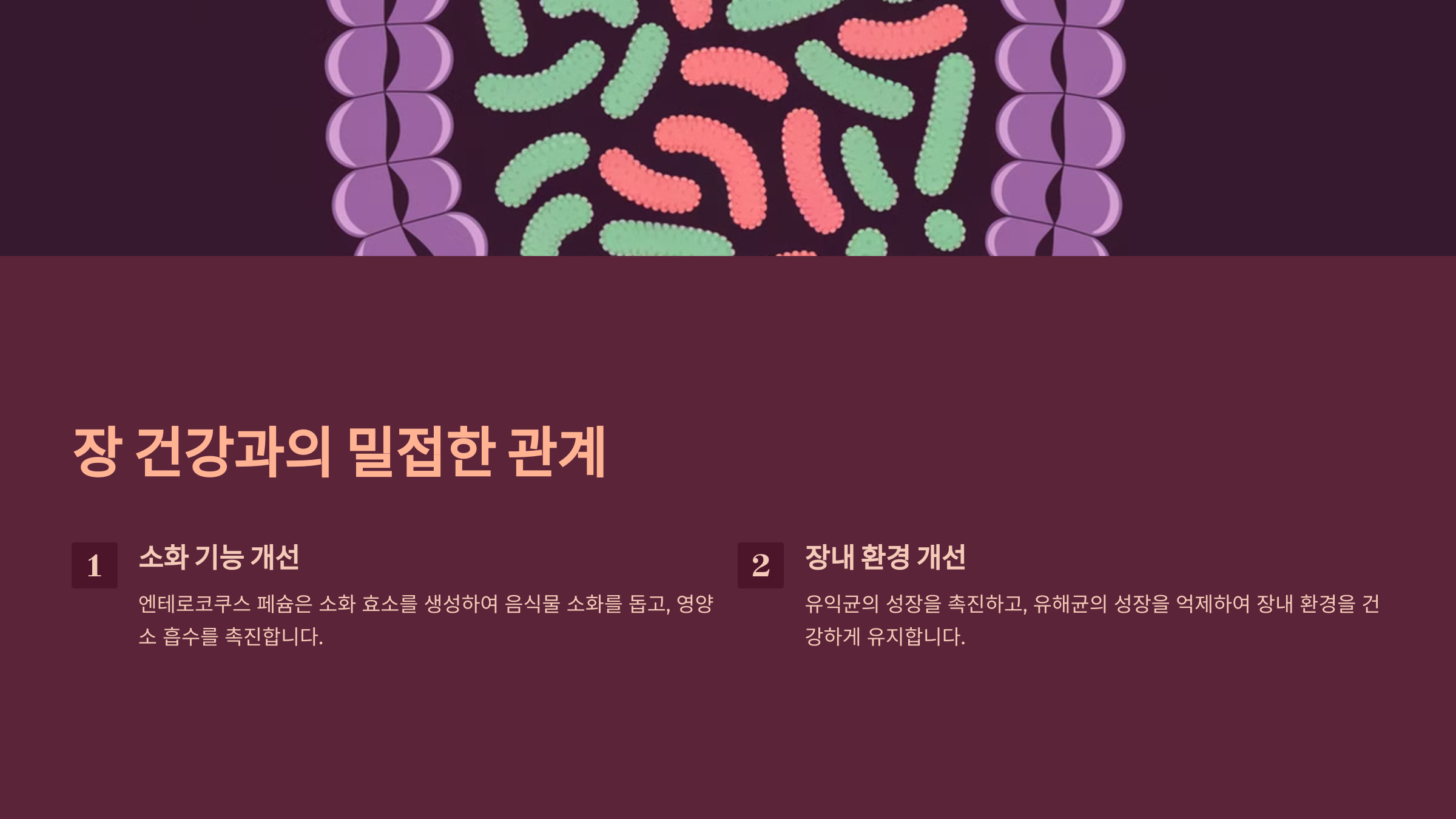 👇 다음 섹션에서 엔테로코쿠스 페슘과 장 건강의 관계를 알아볼게요!
