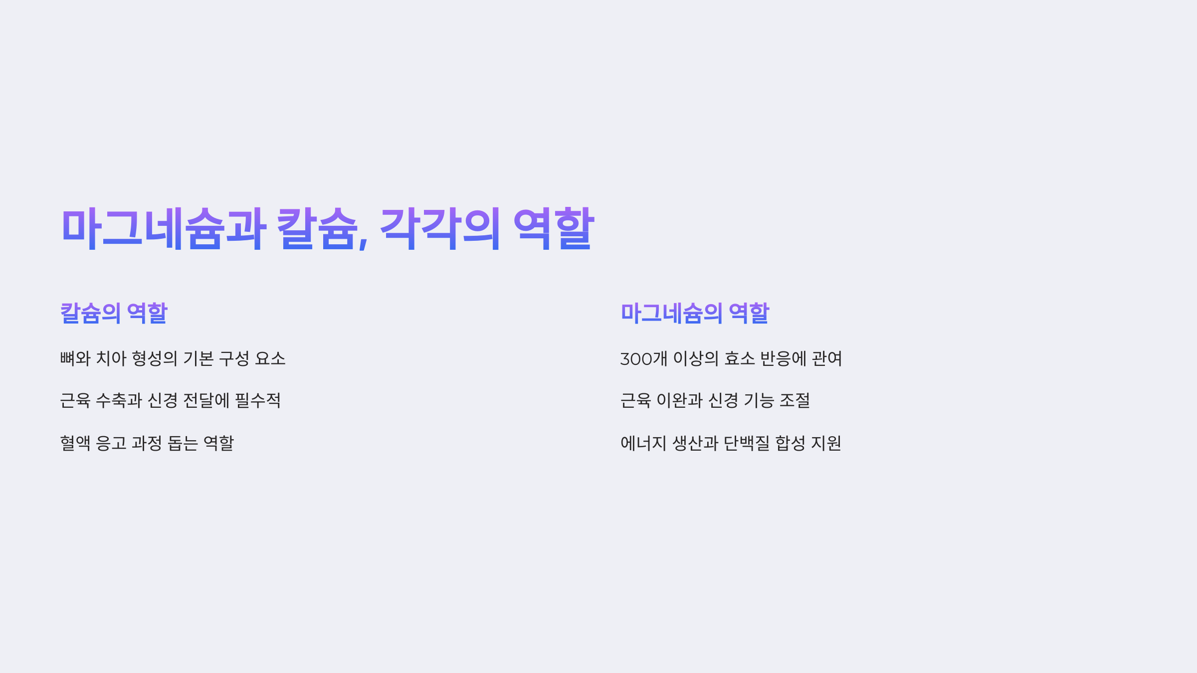 ⚖️ 마그네슘과 칼슘, 각각의 역할