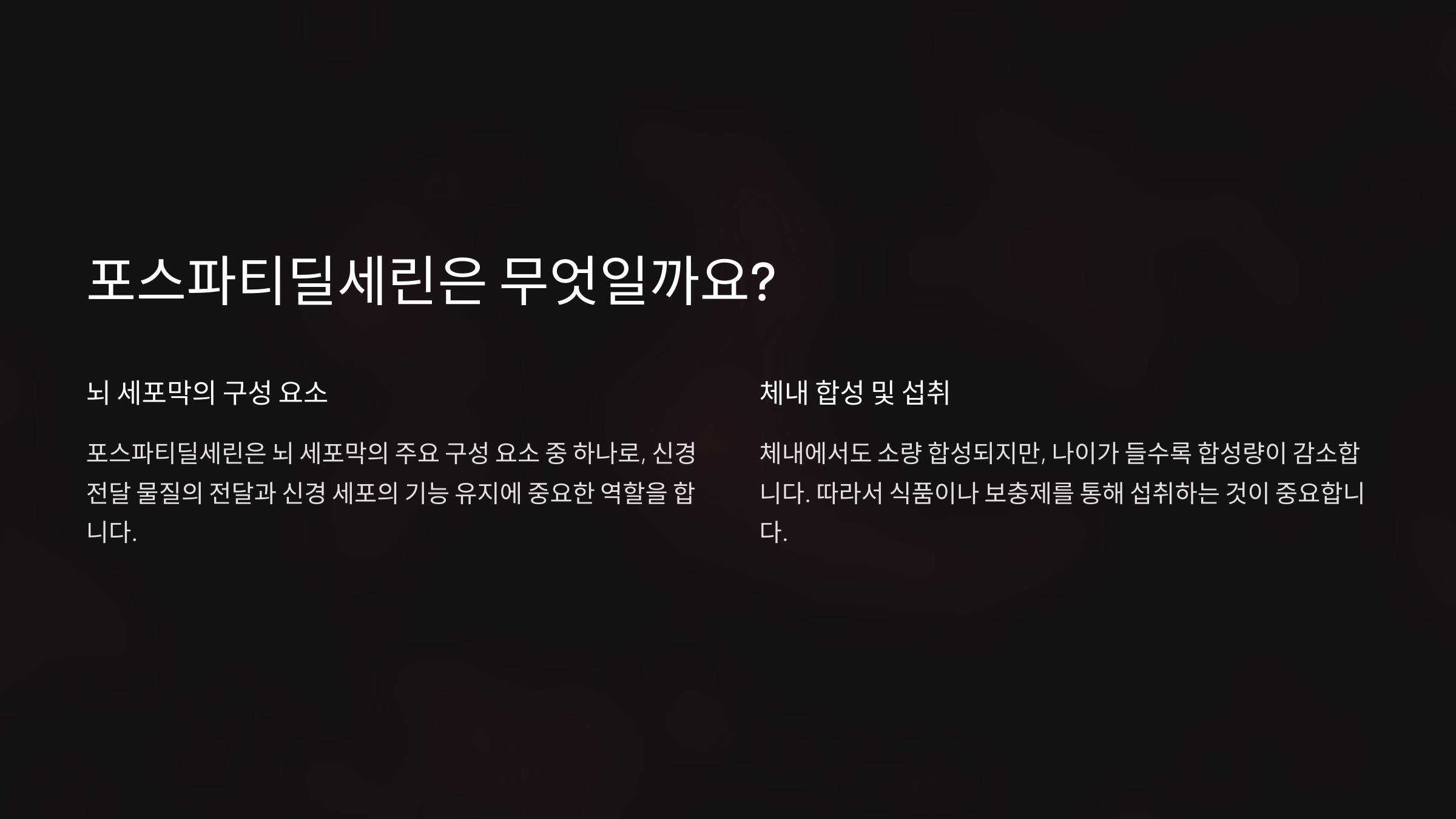 포스파티딜세린은 단순한 영양소가 아니라, **두뇌 건강을 지키는 핵심 성분**이에요!