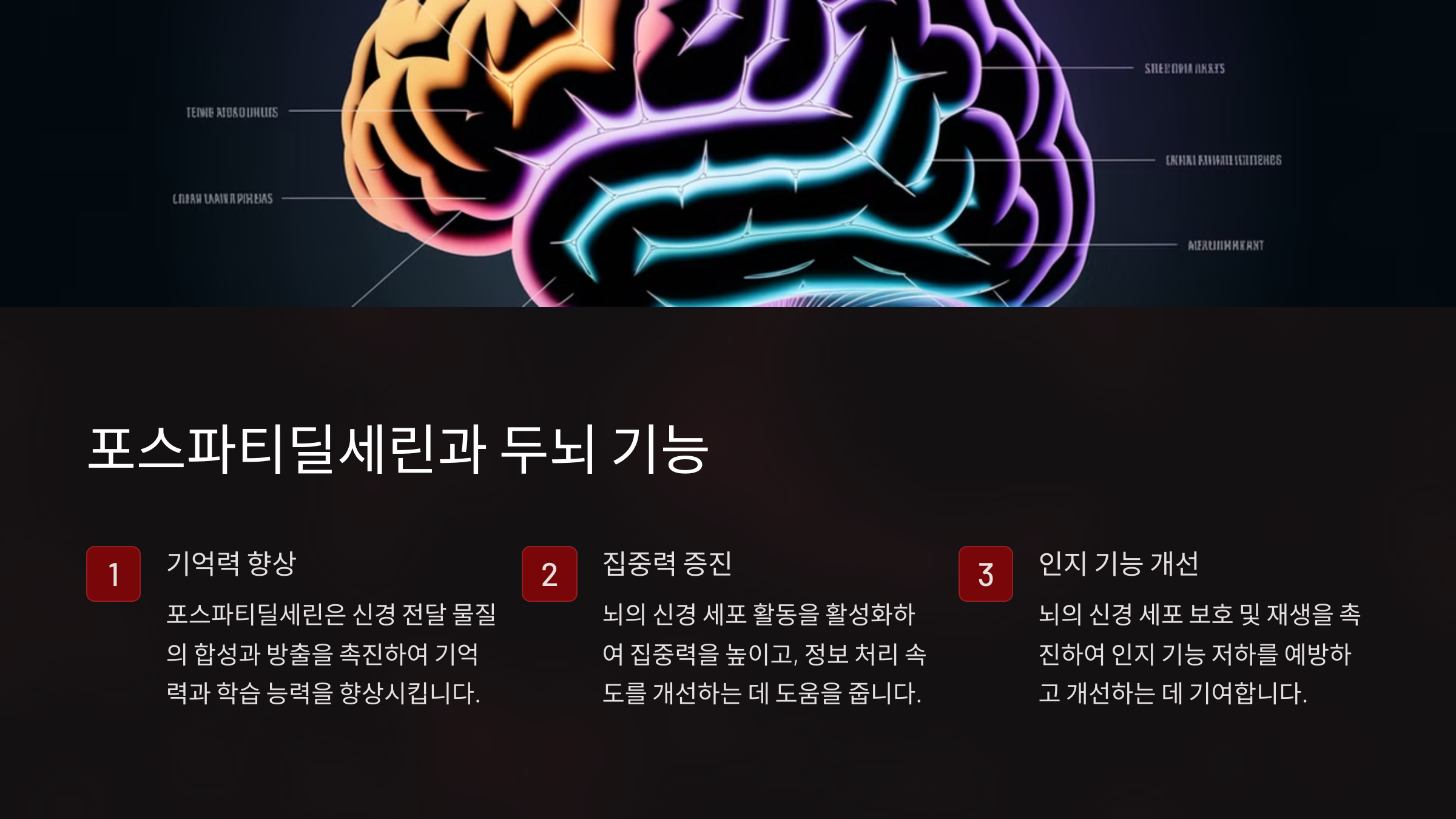 포스파티딜세린은 단순한 영양소가 아니라, **두뇌 건강을 지키는 핵심 성분**이에요!