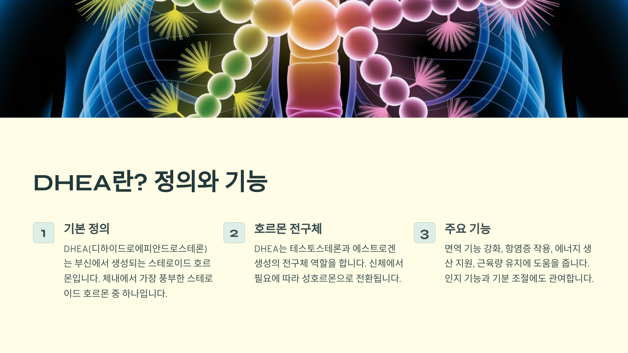 그렇다면 DHEA가 정확히 어떤 역할을 하며, 어떻게 증가시킬 수 있을까요? 지금부터 DHEA에 대해 하나씩 자세히 알아볼게요! 🧐