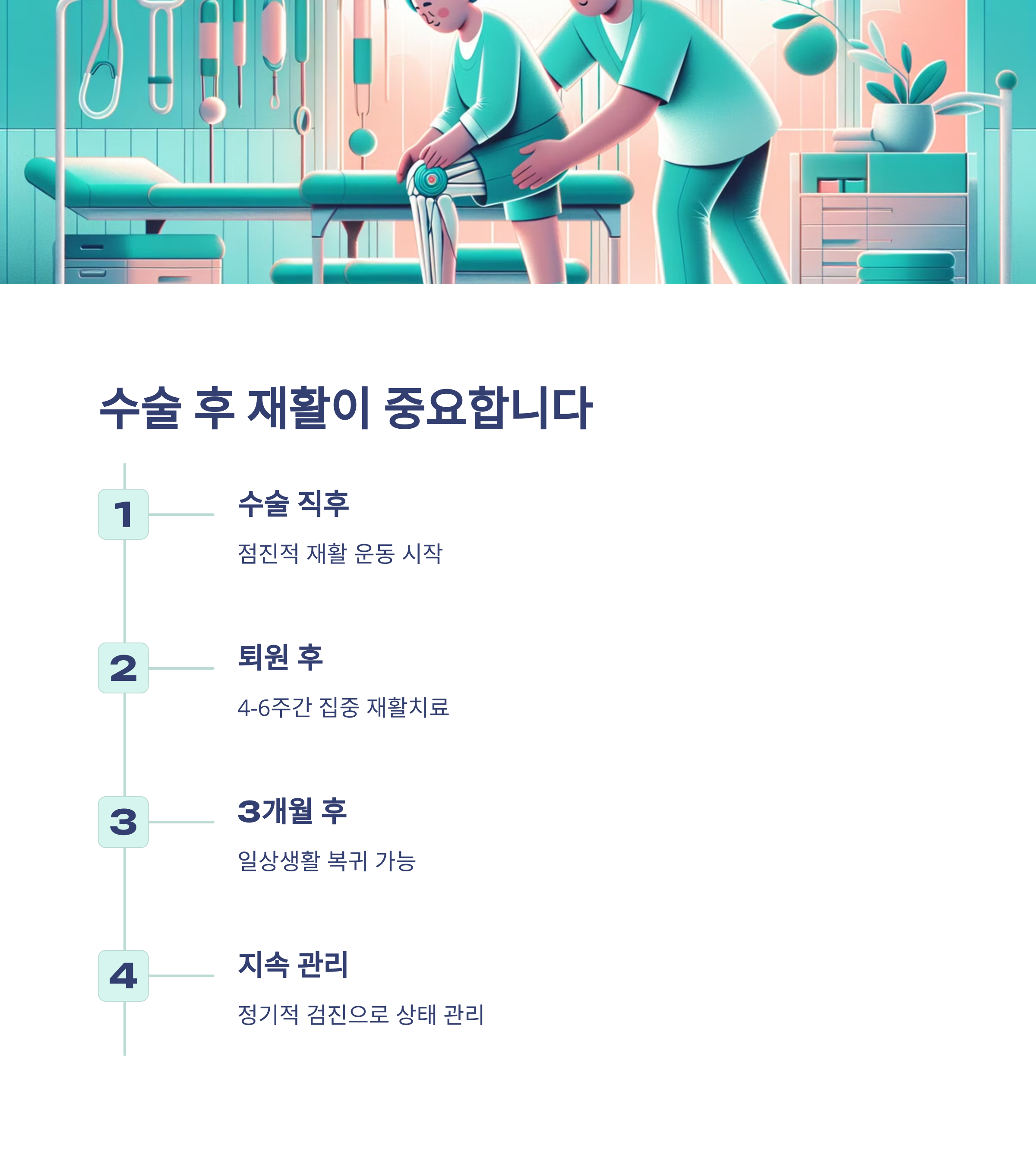 수술 후에는 재활 치료가 중요해요. 꾸준한 운동과 관리가 필요하며, 의료진의 지시에 따라야 해요. 😊