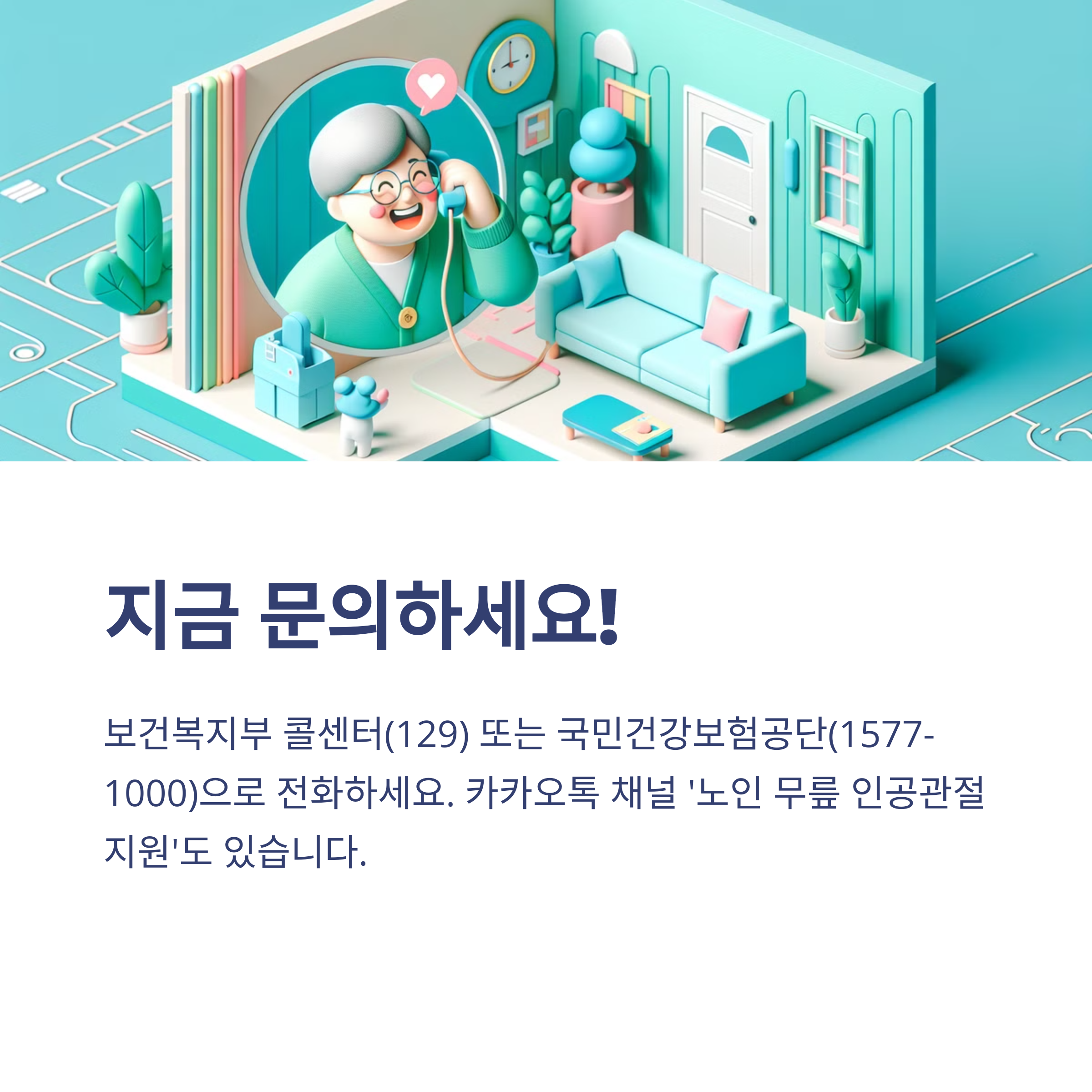 궁금한 점이 있다면 가까운 보건소나 병원에 문의해 보세요! 건강한 무릎으로 더 활기찬 생활을 하시길 응원할게요. 🦵💪