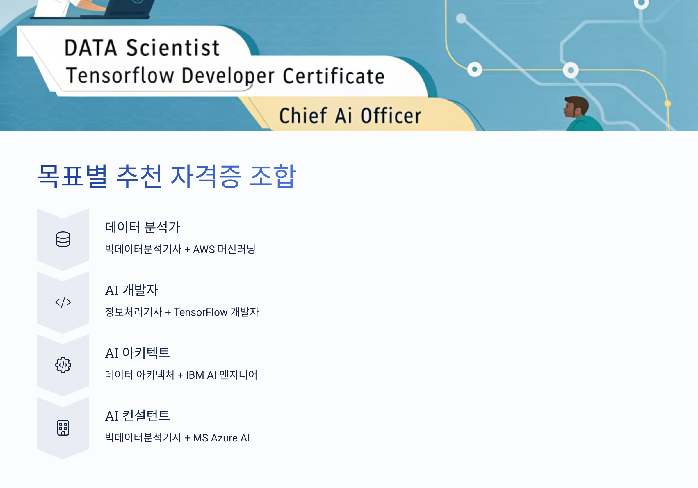 | 대표 자격증 | ADsP, SQLD, 정보처리기사 | GPT 인증, AI-900, TensorFlow |