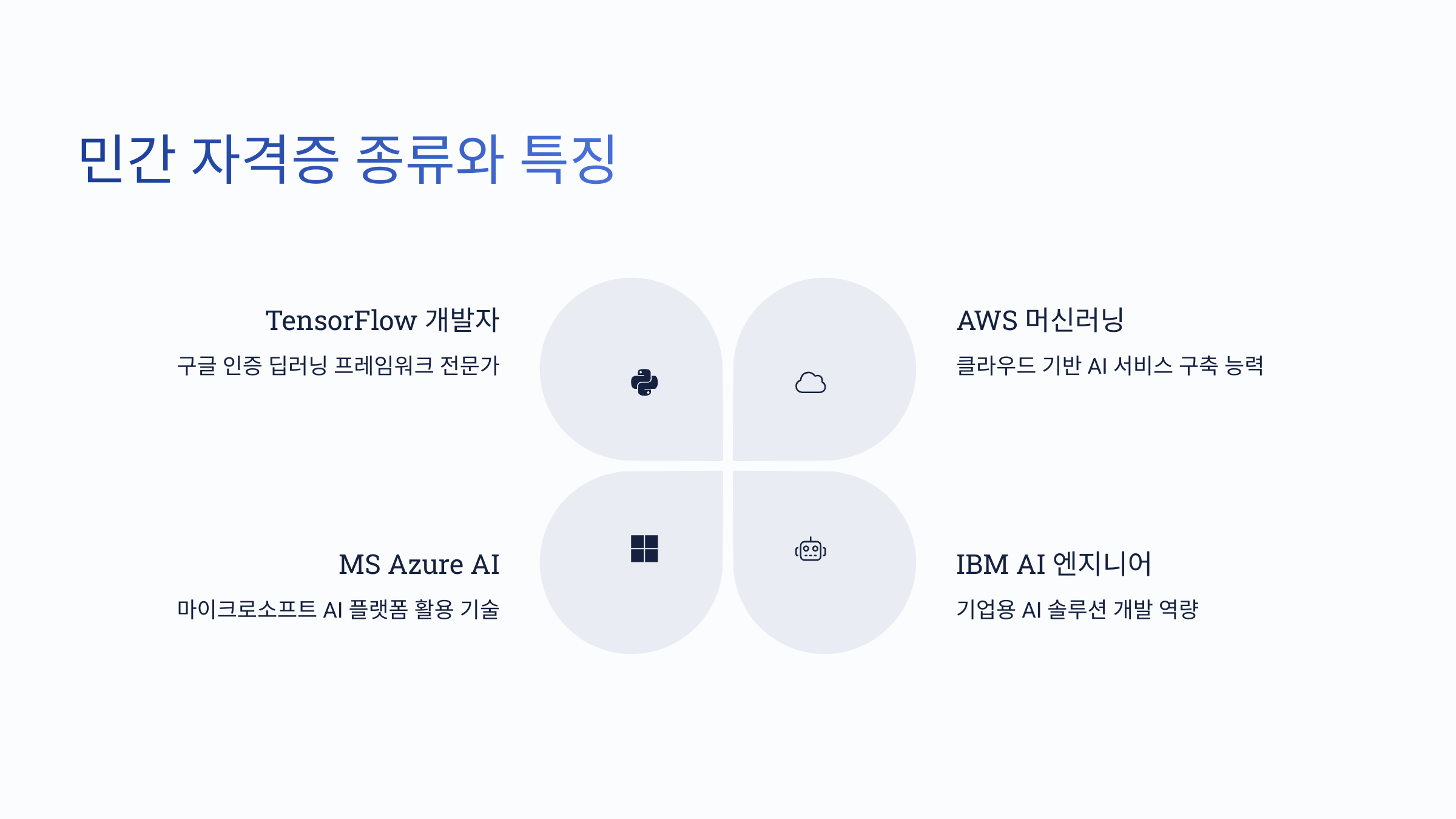 민간 자격증은 다양한 교육 기관과 글로벌 기업들이 제공해요. 특히 Microsoft, Google, OpenAI, IBM 등 기술 중심 기업들이 제공하는 인증은 실무 기반 교육과 직접 연결되어 있어요. 💡